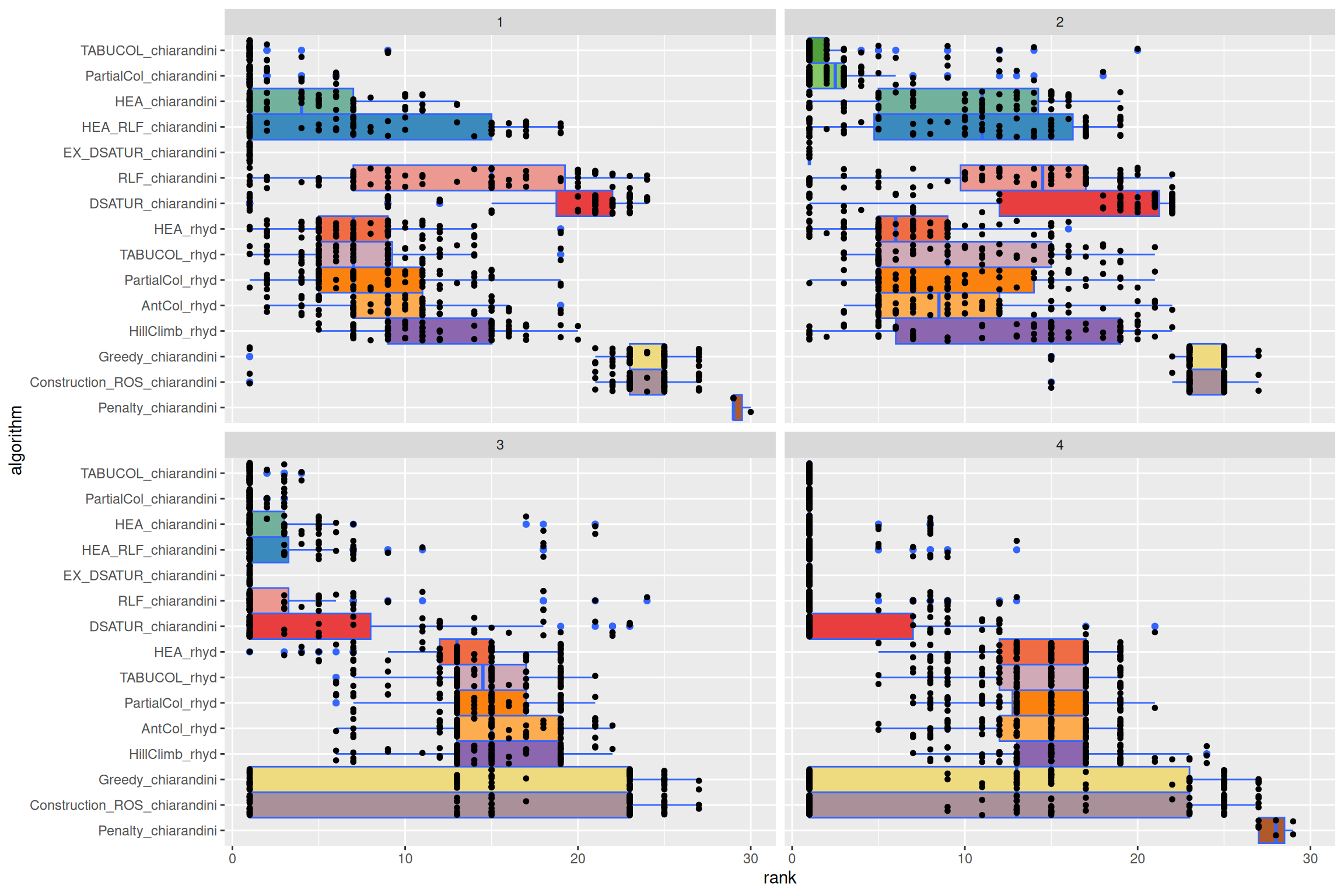 Each currently used algorithm has had 2 runs, Algorithms with no valid solutions are ignored and removed completely from the ranking. Any missing solutions, are not counted against an algorithm due to the shorter running time.